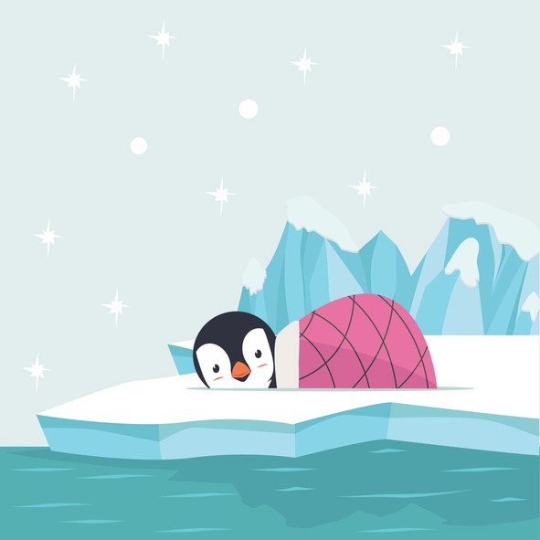 펭귄이 눈 속에서 편안하게 있는 꿈